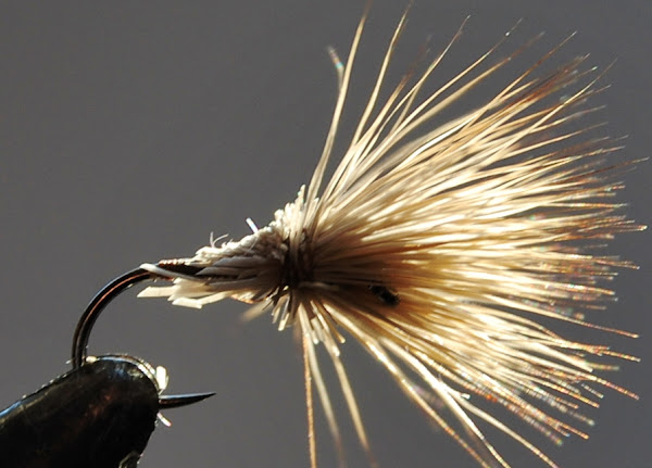 Para su confección el material por excelencia es el pelo de ciervo, pero en tamaños pequeños (anzuelos del 18) podemos utilizar perfectamente Pluma de Gallo de León, algo que me enseñó y demostró hace unos años Jesús G. Azorero, quien me regaló unos montajes así hechos que demostraron su valía, siendo esta pluma mucho más fácil de manejar que el pelo de ciervo en estos pequeños montajes, compensando la pérdida de visibilidad con el brillo característico del GDL (se puede incluir un mechón de CDC en mitad del “abanico” para aumentarla).