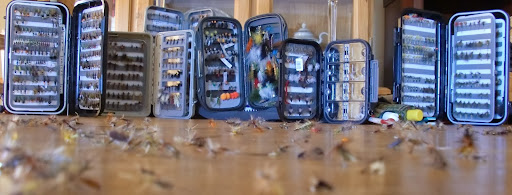 Septiembre, 2013. Han pasado años de rutas, de días buenos y malos, de hacer amigos y de perderlos y de dejar piercings en las salgueras. Aunque el transcurso del tiempo me ha tentado para entrar en la fase de eliminar todas las cajas habituales del chaleco y quedarme con una sola, no lo he hecho porque me frena un irracional afecto hacia todos y cada uno de esos peluches inanimados. Ha descendido de nuevo el número de revistas especializadas, y me he ido interesando en destinos y en publicaciones de otros países. Hubo otras muchas moscas-fetiche, pero nunca olvidé a aquella de alitas grizzly. Ralenticé mi dedicación al montaje y aumenté en proporción las moscas compradas y las moscas “con las que hay que pescar”, que los colegas me facilitan sobre la marcha. Biólogos especializados han puesto en duda bastantes identificaciones de quienes, como yo, nos metíamos a cocinillas de entomología. Hay algunas iniciativas interesantes a favor del gallo de León y las últimas generaciones de competición han consolidado y extendido una escuela pragmática, heredera de las controversias clásicas, donde las líneas, los indicadores, los bajos, las moscas etc., se constituyen ingeniosamente en meros recursos moldeables al servicio de la eficiencia, y donde buscar parangones naturales –por ejemplo- a una ninfa de perdigón, carece de sentido.